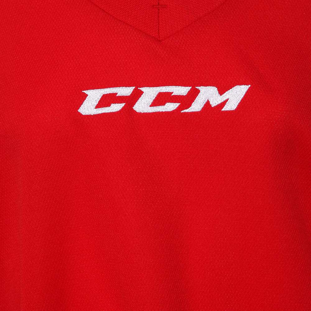 Дизайн: модель CCM 5000 обладает яркими и стойкими цветами, долго сохраняющими свою насыщенность после множества стирок. Ворот имеет V-образную форму с отделкой для максимально комфортного контакта с шеей игрока. В передней части расположен логотип бренда «CCM», нанесенный с помощью вышивки.