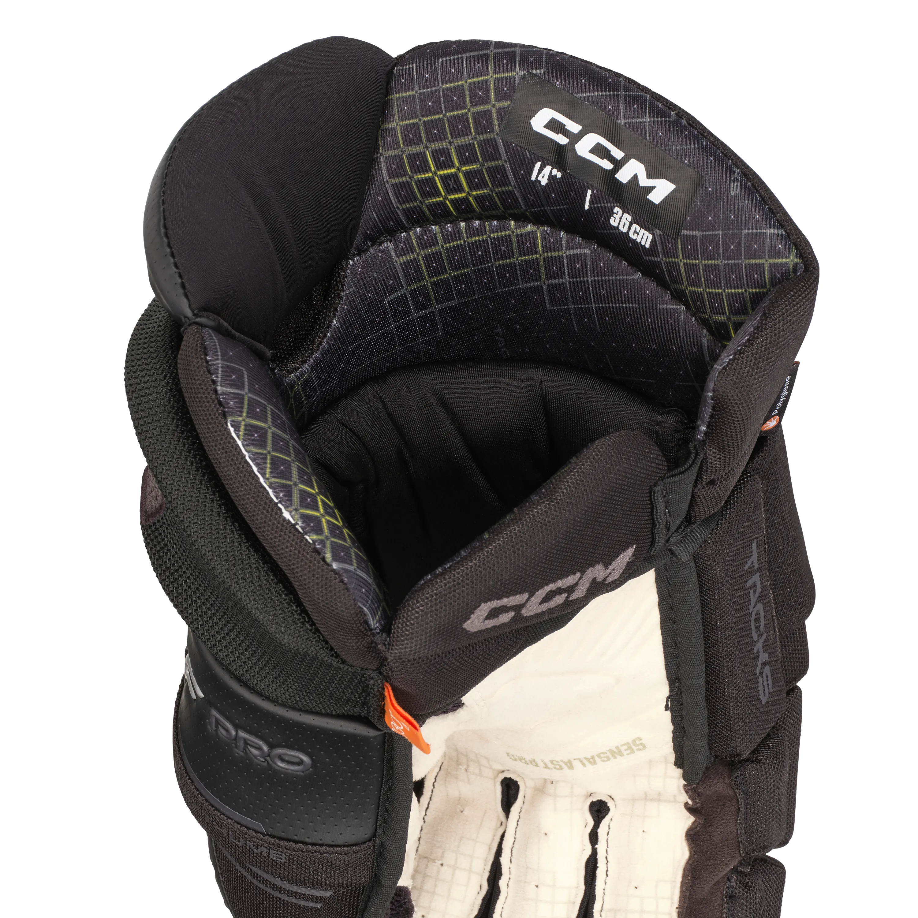 Ладошка перчатки: обновленная ладошка перчатки TACKS XF PRO представляет из себя комбинацию материалов PRO CLARINO и SENSALAST PRO. Данная комбинация создает максимальный срок службы перчаток в сочетании с идеальным сцеплением с клюшкой. Данные перчатки обладают профессиональной посадкой и отверстием для проветривания ладони, а технология POLYGIENE создает наивысшую антибактериальную защиту.