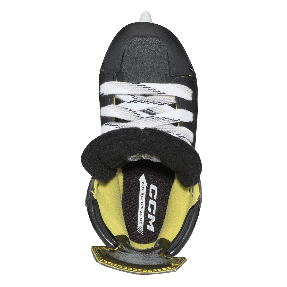 Внутреннее наполнение: Пена ADPT с эффектом памяти вокруг лодыжек, дополнительная удобная подушечка в области ботинка и многослойная подкладка из пеноматериала прекрасно облегают ногу, обеспечивая идеальную посадку и комфорт во время игр или тренировок. Технология SlickTec помогает с легкостью надеть коньки юному спортсмену и выйти на лед. Благодаря стельке KID SIZING ZONE вы можете с легкостью подобрать размер для маленькой стопы, что обеспечит юным игрокам превосходную поддержку и комфорт.