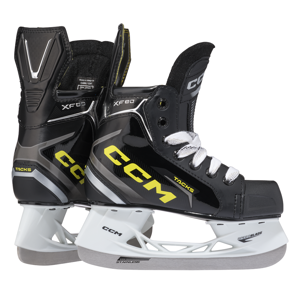 Детские хоккейные коньки TACKS XF80 - новинка в линейке TACKS 2024 года, созданная для самых юных хоккеистов, которые делают свои первые шаги на льду. Мощный и стильный дизайн присущий моделям TACKS, надежный и защищающий ногу вашего ребенка ботинок, комфорт во время эксплуатации – все это делает коньки XF80 отличным выбором для маленьких хоккеистов, которым только предстоит стать профессионалами.