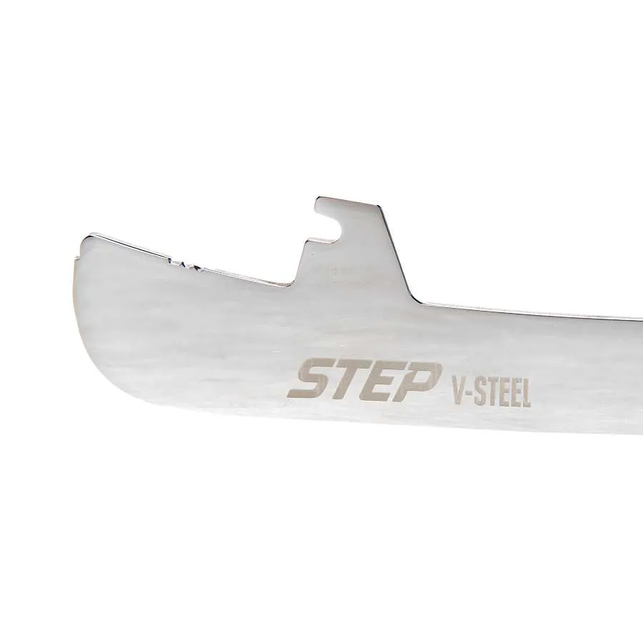 Лезвие V-Steel создается из нержавеющей стали, которое тщательно полируется для получения зеркального отражения и более острого края. Данное лезвие позволяет значительно снизить сопротивление при перемещении по льду. Игрок может расходовать минимальное количество энергии и достичь более точных маневров.