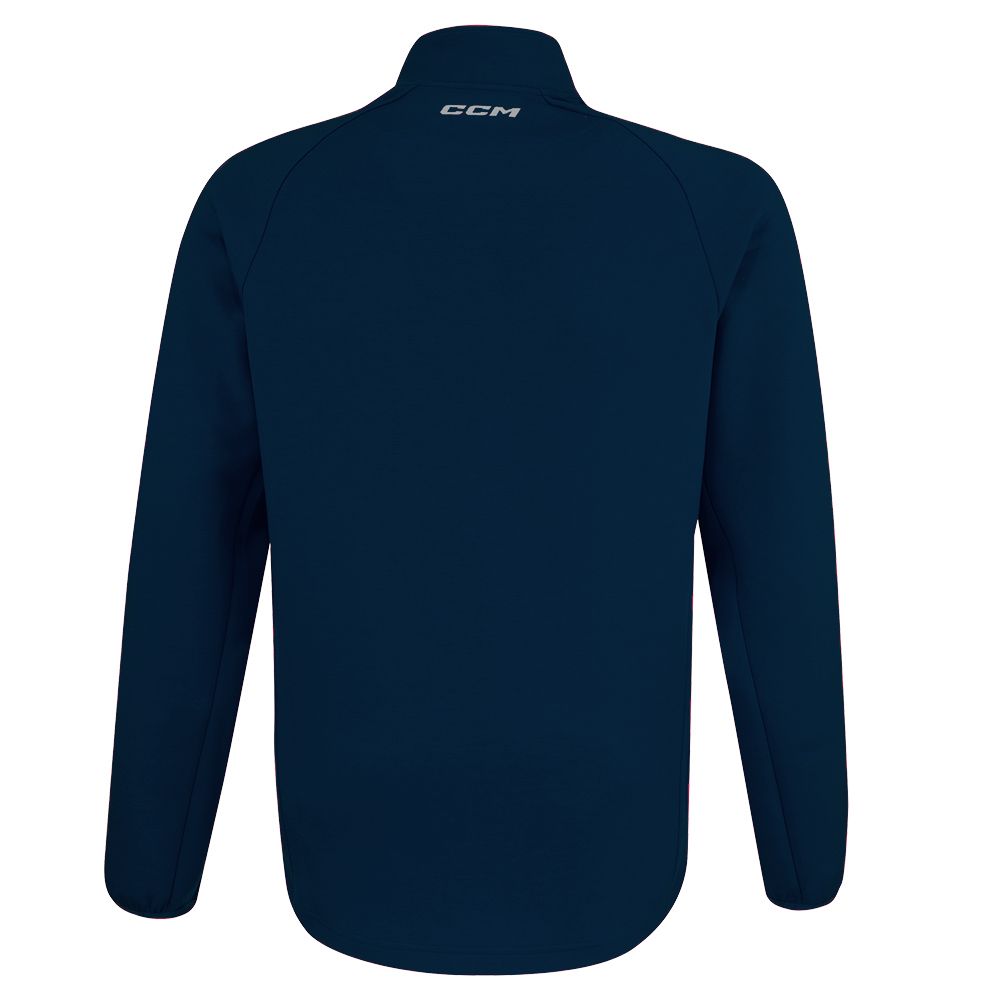 Молния на 1/4 длины, карманы на молнии по бокам и вышитый логотип ССМ на правом плече.